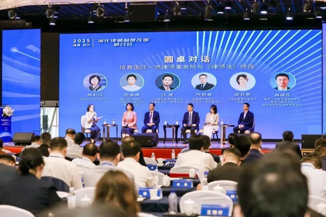 本次研讨会聚焦党的二十届三中全会“健全中国特色社会主义法治体系”部署,探讨中国式现代化背景下律师制度改革重点任务。姜述弢参与“培育国际一流律师事务所与《律师法》修改”圆桌对话,与各知名律所实务界代表交流对话。