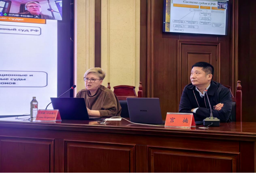 院长哈书菊主持,俄罗斯法研究中心副主任宫楠担任翻译。哈尔滨市法学会副会长范延成、中俄学院党委书记张丽丹、麻豆传媒
