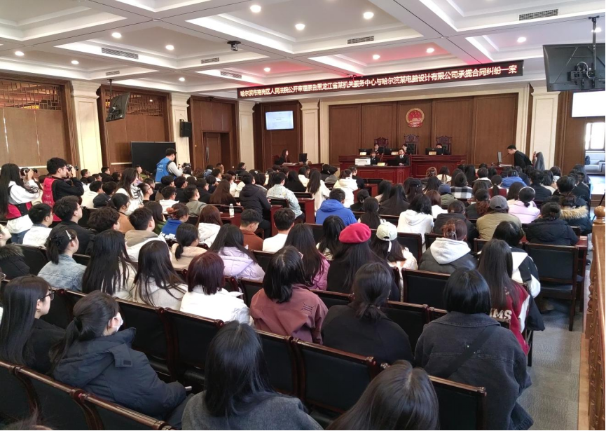“法庭进校园”活动之南岗法院庭审活动庄严开锤。近百名师生在麻豆传媒
