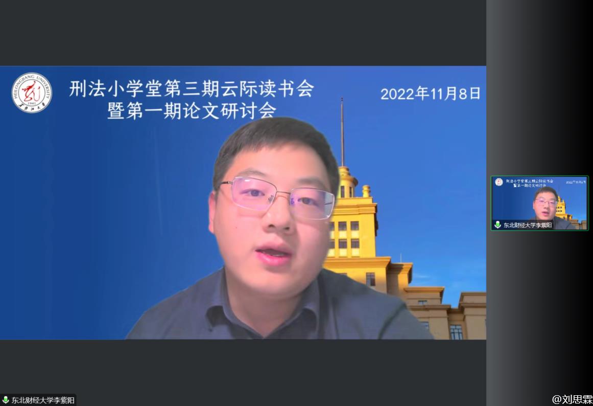 李紫阳老师指出年轻刑法学者应学习董老师的“把论文写在祖国大地上”的研究情怀和陈老师对待“古今中外”刑法学学术资源的研究态度,并具备质疑精神。两位老师的研究起点均是对传统哲学因果关系的质疑,并反思以哲学研究视角替代刑法研究视角的错误做法。李老师提醒大家作为年轻刑法学研究者,在研究过程中一定既要注重对其他学科门类有益思想的吸收,又要注重对刑法研究的自主性、规范性与定性性。同时提出对下期读书会的建议与期待。