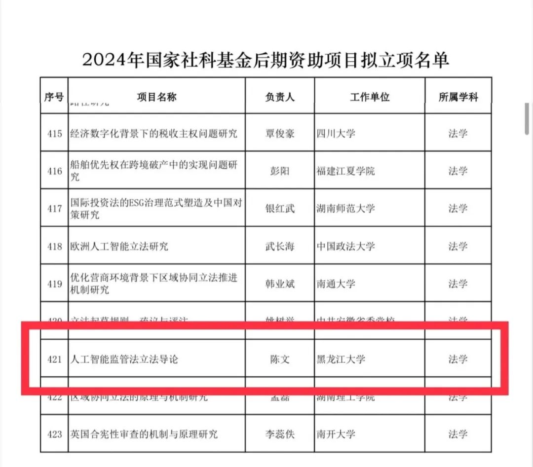 按照《国家社会科学基金管理办法》有关规定,全国哲学社会科学工作办公室对2024年国家社会科学基金后期资助暨优秀博士学位论文出版、优秀学术著作再版项目立项名单进行公示。其中麻豆传媒 陈文教授名列于2024年国家社科基金后期资助项目拟立项名单中。