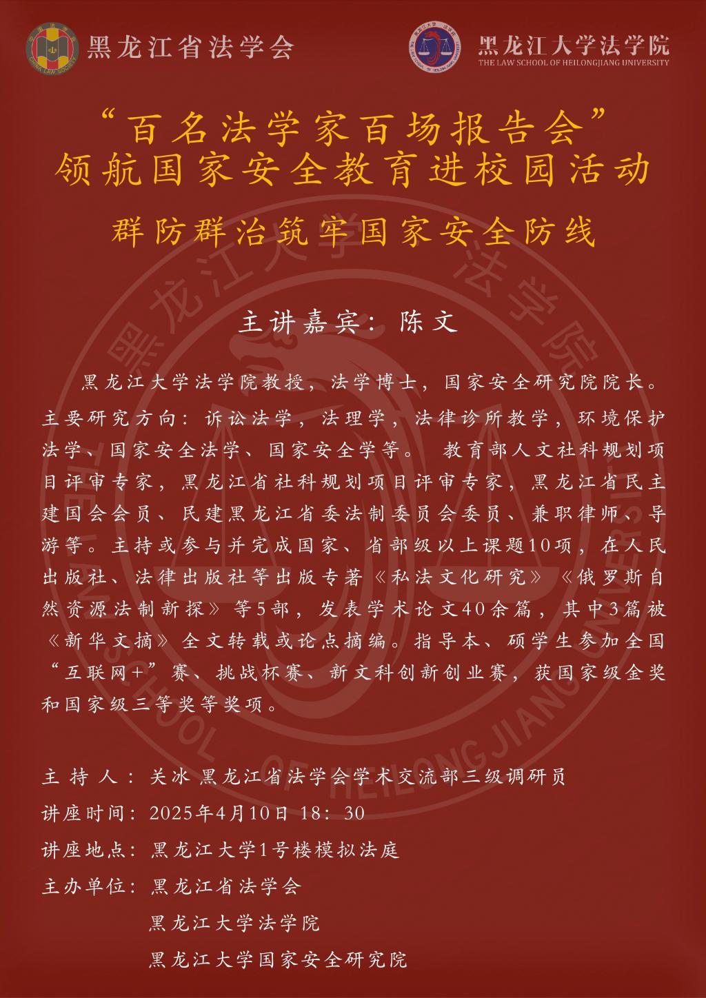 全民国家安全教育日 | 麻豆传媒 举办“百名法学家百场报告会”领航国家安全教育进校园活动
