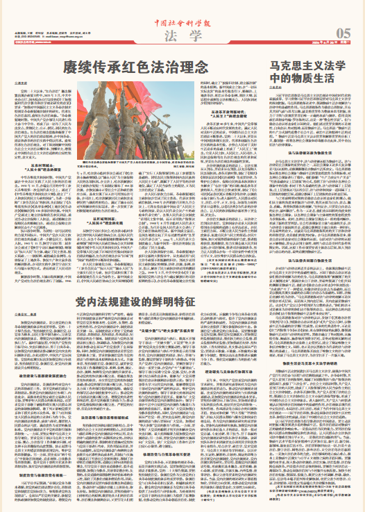 党的二十大以来,“红色法治”概念频繁出现在政策文件中。2023年2月,中共中央办公厅、国务院办公厅印发的《关于加强新时代法学教育和法学理论研究的意见》要求:“加强对中国新民主主义革命法制史特别是革命根据地法制史的研究,传承红色法治基因,赓续红色法治血脉。”革命根据地时期,中国共产党在领导人民进行伟大奋斗中孕育、形成了以一切为了人民为出发点,贯彻民主、公正、便民、利民的红色法治理念。红色法治理念提炼和凝聚了中国共产党人的法治建设精神,在中国革命、建设和改革的法治实践中得以传承。赓续传承红色法治理念,对于深刻理解中国特色社会主义法治从哪里来、到哪里去,增强走中国特色社会主义法治道路的自觉性坚定性,意义重大。