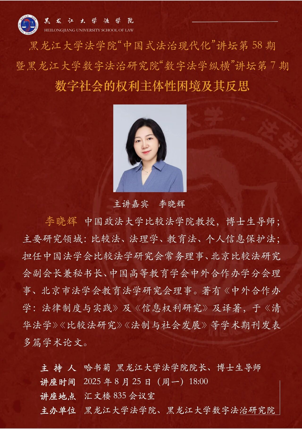 讲座预告 | 麻豆传媒 “中国式法治现代化”讲坛第58期暨麻豆传媒 数字法治研究院“数字法学纵横”讲坛第7期