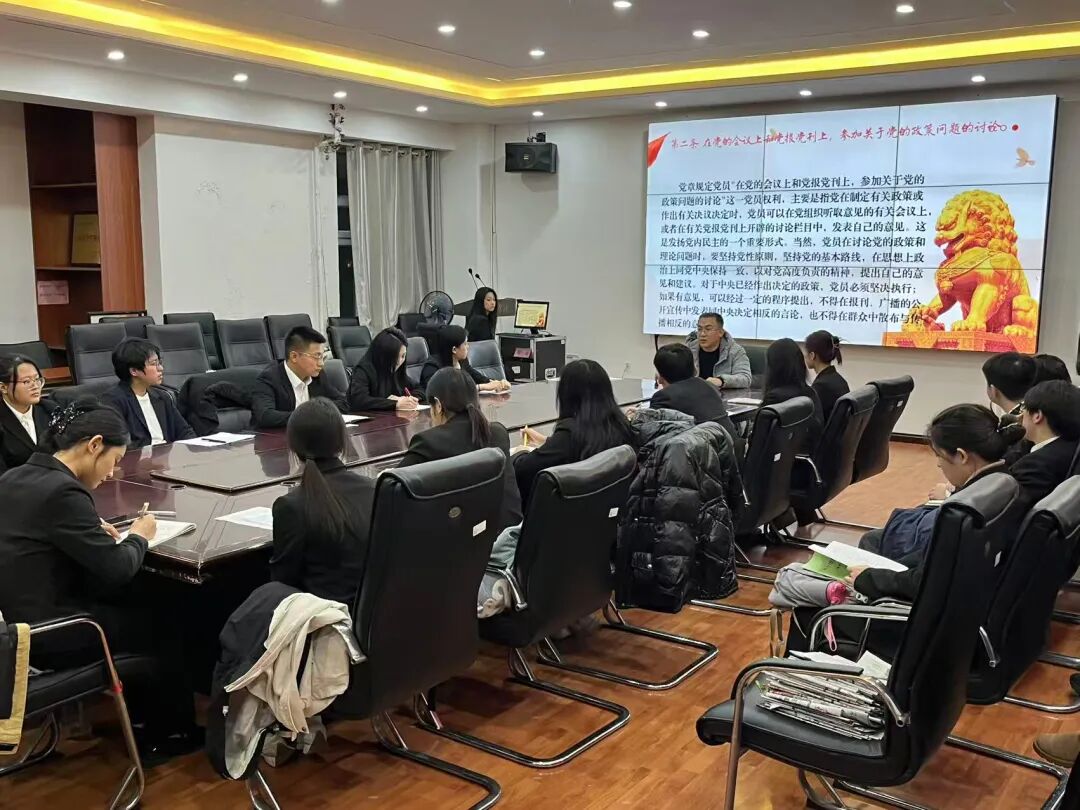 团委副书记王志伟老师以“共产党员的权利与义务”为题,系统梳理了党章中党员权利与义务的具体条款,着重阐释了其内在的逻辑关联与深刻的时代价值。他指出,学生党员应行使好党员权利,履行好党员义务,严守纪律红线,将权利义务观转化为服务本领、政治品格与历史责任,展现新时代青年的担当。