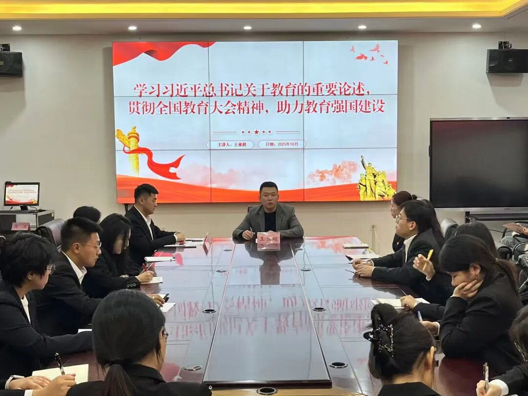 团委书记王业超老师带领同学们深入学习习近平总书记关于教育的重要论述、全国教育大会精神和《教育强国建设规划纲要(2024-2035年)》精神。他强调要学好政治理论,筑牢理想信念之基,并勉励学生党员要将个人梦想融入国家发展伟业,为建设教育强国、实现中华民族伟大复兴贡献力量。