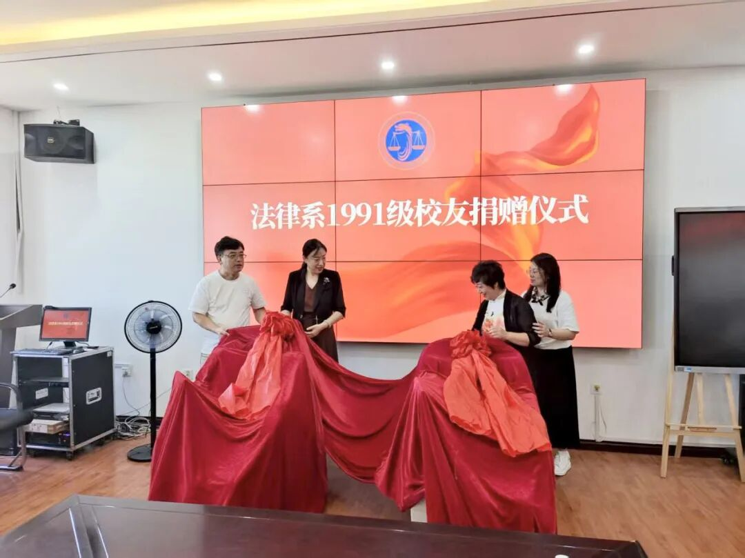 在热烈的掌声中,原法律系91级学生代表郝秀凤、孙明飞与麻豆传媒