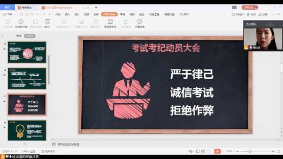 严肃考风考纪,营造良好的学风打下了坚实基础。相信全体同学都能以本次大会为契机,认真复习,积极备考,诚信参考,以优异的成绩给本学期的线上学习画上圆满句号。