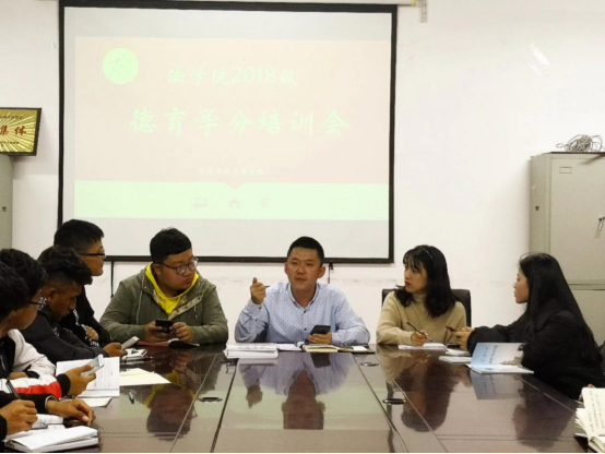 于近日召开了2018级德育学分(第二课堂)线上操作流程培训会,为班级德育学分考评小组进行专项培训。本次培训会由院团委书记、2018级辅导员王业超老师组织召开,学院2018级全体班委参加本次培训。