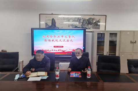 黑龙江粮食交易市场董事长、党组书记魏志伟以及哈尔滨市交警队法制大队长金汉龙分别介绍了各自单位的基本情况,并就本单位的实习实训和招聘需求做了说明。之后,双方就校企合作、实习实训以及就业等方面达成初步共识。