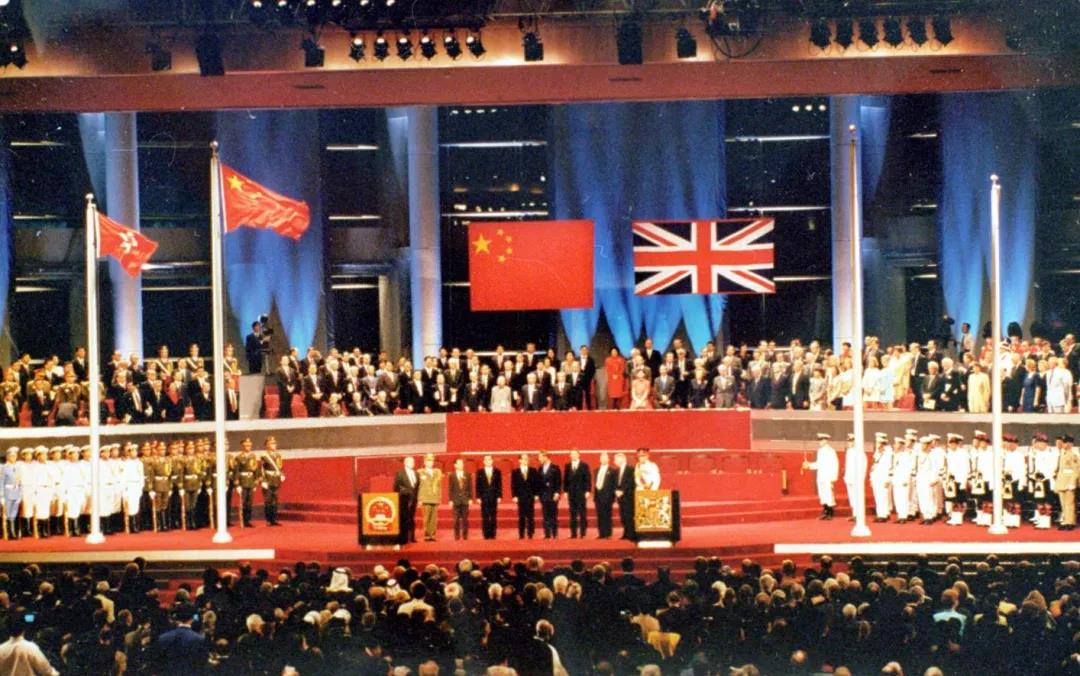 经济改革正在推进,祖国统一大业的步伐也在迈进,1997年7月1日零点整,中华人民共和国国旗和香港特别行政区区旗在香港升起,经历了百年沧桑的香港回到祖国的怀抱,中国政府开始对香港恢复行使主权。1997年6月30日午夜至7月1日凌晨,香港会议展览中心新翼灯火辉煌,举世瞩目的中英两国政府香港政权交接仪式在这里的五楼大会堂隆重举行。历史的时钟指在1997年7月1日零点那一刻,大会堂全场肃立,几千双眼睛向鲜艳的五星红旗和紫荆花区旗行注目礼。这是中华民族长久期盼的一个瞬间,这是永载世界史册的一个瞬间!零时4分,中华人民共和国主席江泽民在这里庄严宣告:根据中英关于香港问题的联合声明,两国政府如期举行了香港交接仪式,宣告中国对香港恢复行使主权。中华人民共和国香港特别行政区正式成立。经历了百年沧桑的香港回归祖国,香港回到祖国的怀抱,洗刷了民族百年耻辱,完成了实现祖国完全统一的重要一步。