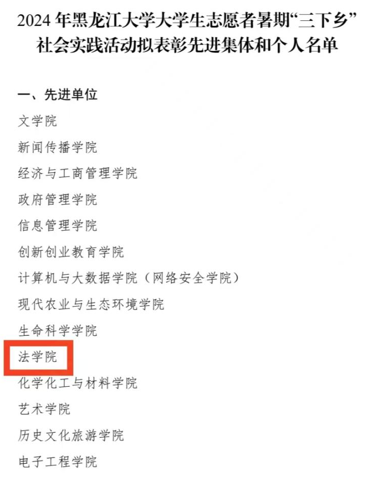 大学生志愿者暑期‘三下乡’社会实践优秀社会实践团队”荣誉称号。是肯定,亦是激励。下一步,实践团将继续以积极进取、昂扬向上的风貌参与社会实践,用行动助力龙江法治振兴!