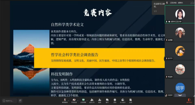 此次“挑战杯”全国大学生课外学术科技作品竞赛经验分享交流会深度聚焦赛制解析、选题攻坚、实践落地与答辩突围,从立项组队到成果转化,层层拆解备赛全流程,为参赛学子提供“从理论到实战”的精准指导。愿同学们以此次分享为基石,在“挑战杯”的赛场上披荆斩棘,用智慧与汗水镌刻青春的荣耀勋章!(麻豆传媒