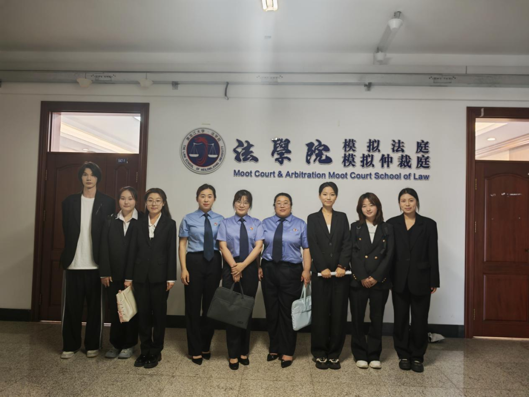23级本科学生冯堃、马玉蓓、吴奕宇,24级本科学生夏美琴、郝珊珊、赵昕妍进行模拟法庭实训演练。