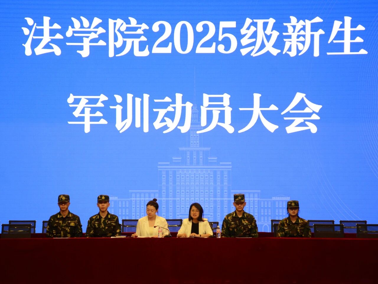 辅导员杜佰慧讲解军训期间的纪律要求和注意事项,号召全体新生携满腔热情投身军训活动,通过军训磨炼意志,培养团队精神,为今后的学习和生活打下坚实的基础。随后,军训全体教官与新生见面,强调军训期间的训练要求与注意事项。会上,学院党委副书记董捷做动员讲话,她指出:一是以军训之名,开启人生新征程。军训是纪律的课堂,法律人以规则为信仰,从内务整理到队列训练,从时间管理到团队协作,希望同学们在“令行禁止”中学会敬畏规则、恪守底线;二是以法学之名,肩负时代使命。以军训为起点,将个人理想融入国家法治建设,做新时代法治中国的建设者与守护者;三是以青春之名,书写奋斗篇章。鼓励同学们在军训中树立目标,保持良好心态,团结互助,始终将安全放在第一位。