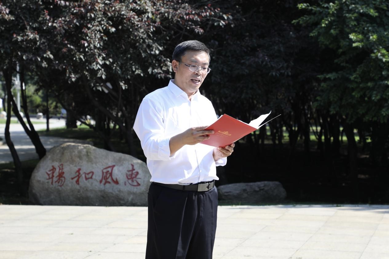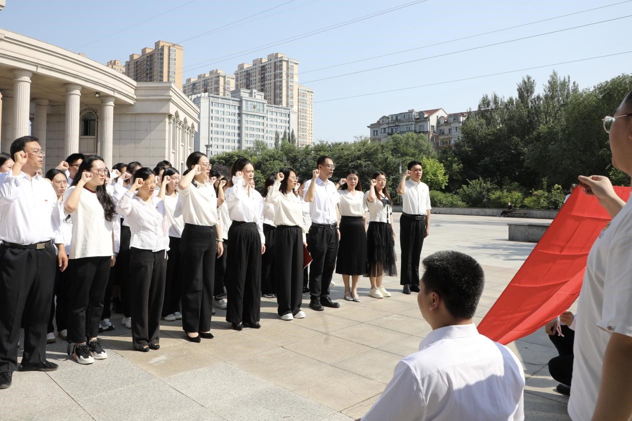 在毛泽东同志题词“不要沾染官僚主义作风”的纪念碑旁,学院党委书记孙世萍带领师生党员面对鲜红的党旗,举起右手庄严宣誓,在一句句铿锵有力的誓词中,全体党员满怀激情,表达着对党的忠诚和听党话、跟党走的决心,进一步端正了新党员的入党动机,再次点燃了老党员们坚定理想信念、践行使命初心的激情。