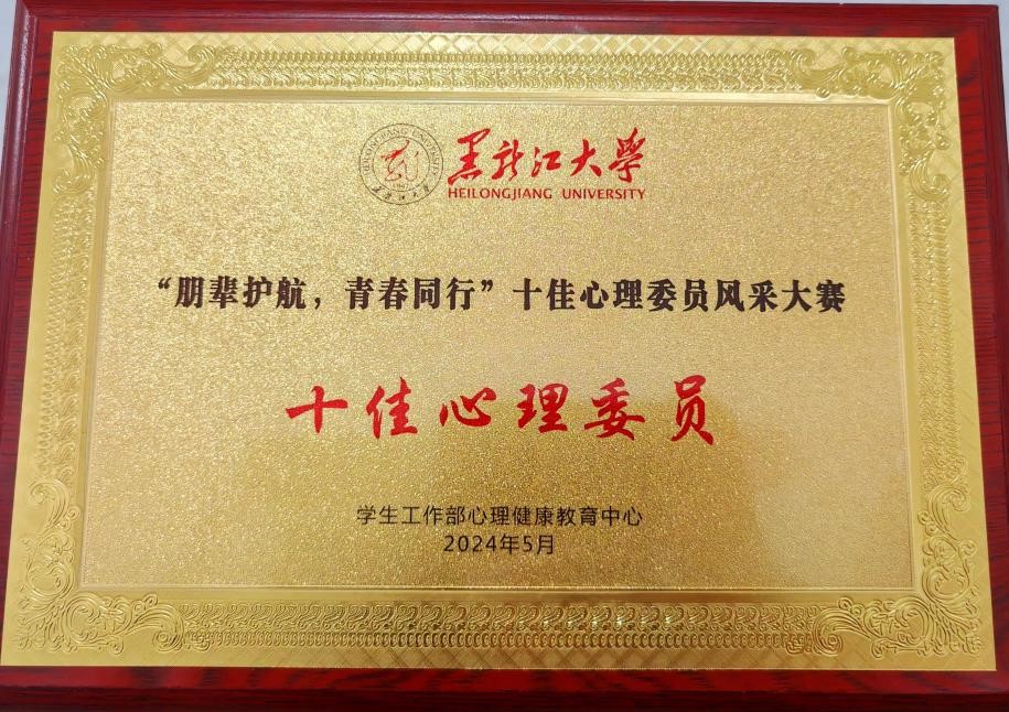 2022级学生尚子琦通过风采展示和案例分析两个环节,阐述心理健康教育工作的思考、方法及成效,并针对题目情境解决问题,最终在众多选手中脱颖而出,荣获“朋辈护航,青春同行”十佳心理委员风采大赛二等奖、“十佳心理委员”荣誉称号。