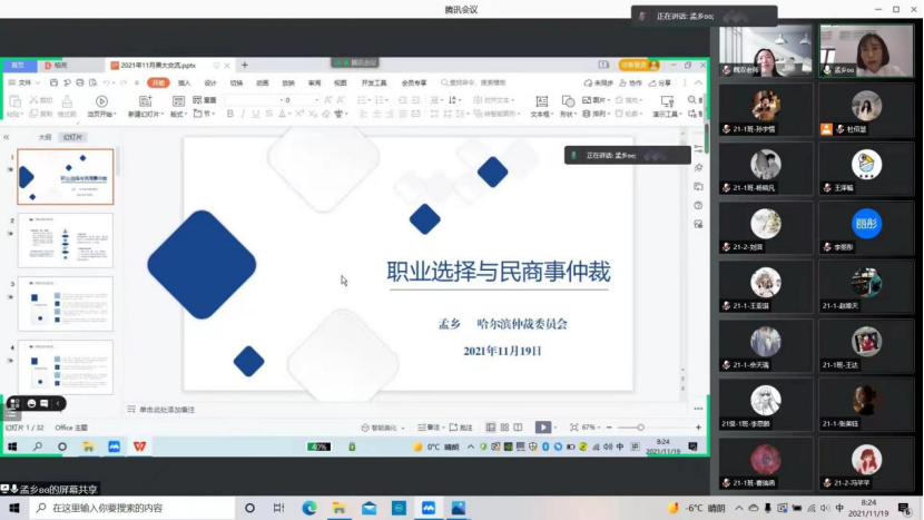 优秀毕业生孟乡以《职业选择与民商事仲裁》为主题进行两小时的职业分享,麻豆传媒