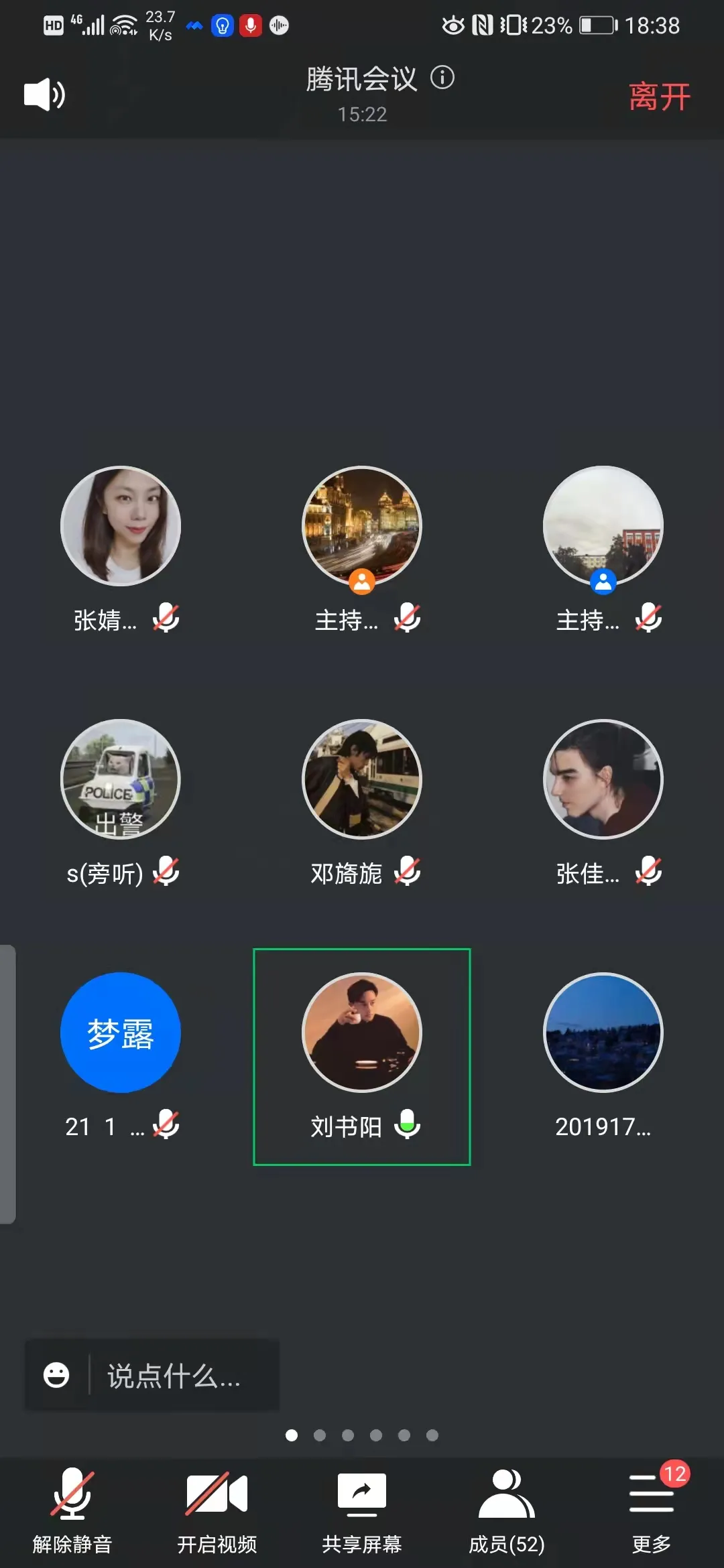 进入分享与交流环节,发言名单上的同学们依次进行发言,发言人发言完毕后进行交流。