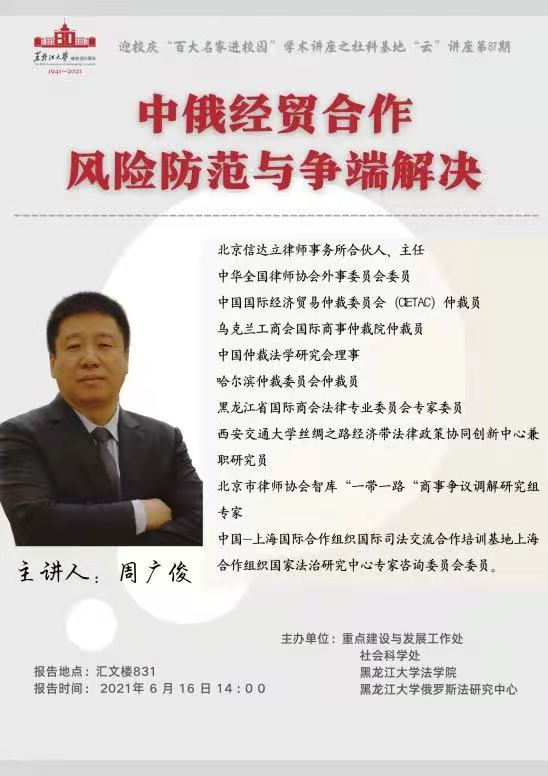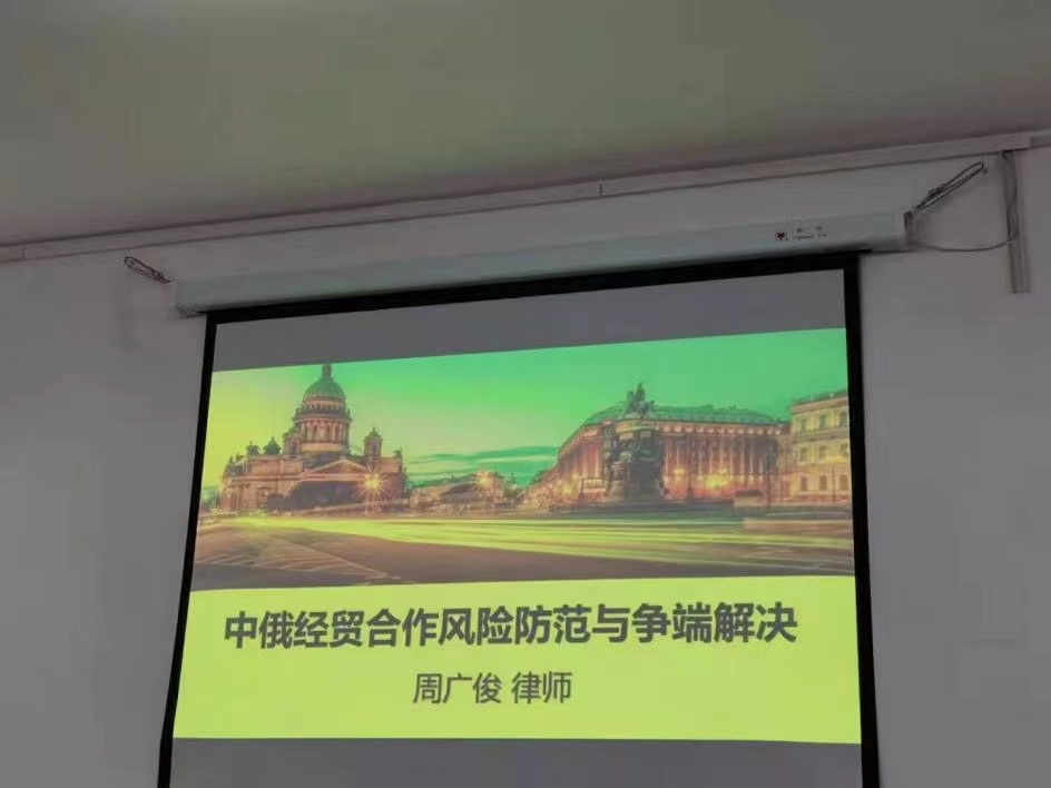 汇文楼835室举行。此次讲座的主讲人是北京信达立律师事务所合伙人、主任周广俊律师,主题为“中俄经贸合作风险防范与争端解决”。讲座由黑大麻豆传媒