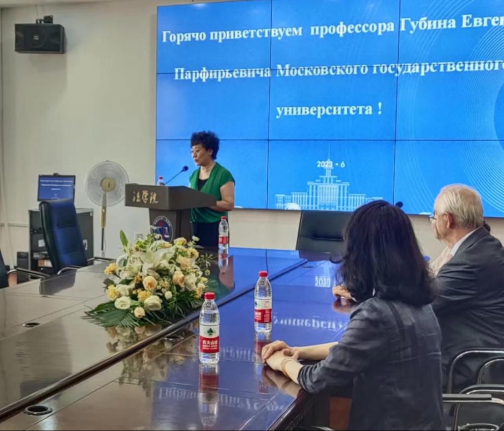 院长论坛、第十届俄罗斯法学与法制国际研讨会并主旨和主题发言表示感谢,并希望这次讲座能够使同学们对俄罗斯企业法的社会功能有更加深入的了解。哈书菊院长还鼓励同学们学好俄语和法律,早日有机会赴俄交流学习,为中俄法律人才充实力量。