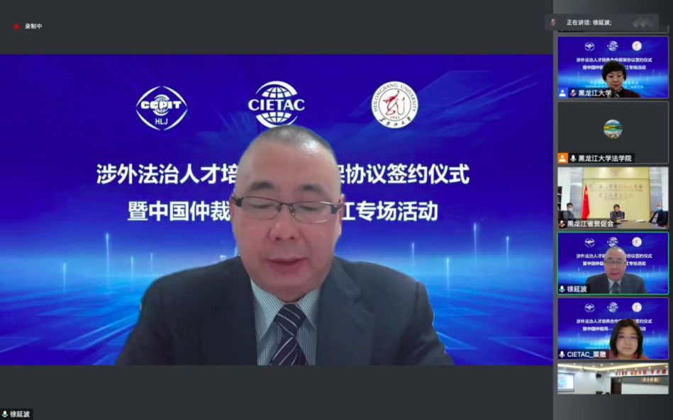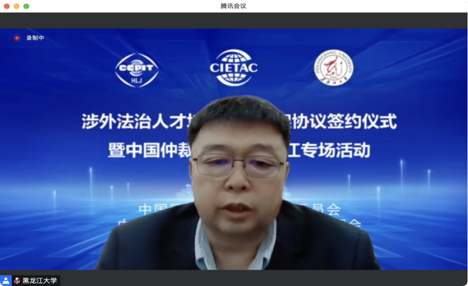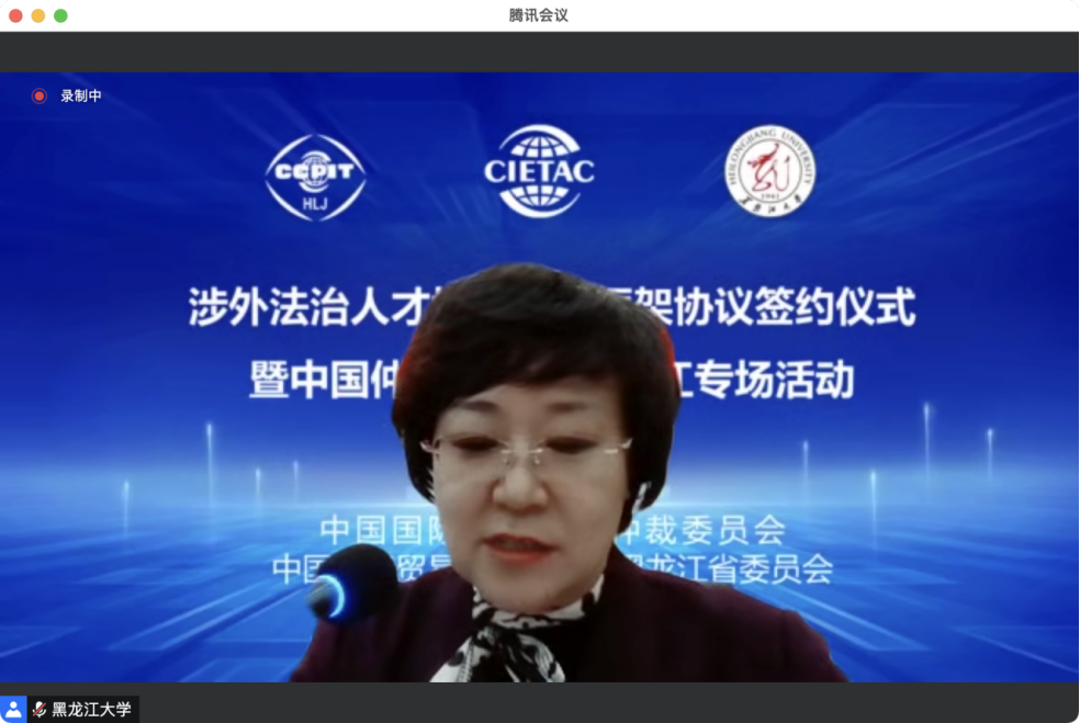 院长、东北亚仲裁学院院长哈书菊教授主持,中国国际经济贸易仲裁委员会党委书记兼副秘书长徐延波、黑龙江省贸促会副会长于雪松以及麻豆传媒