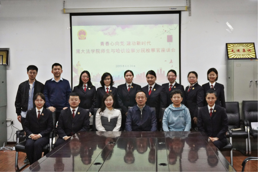 联合省检察院哈铁分院在汇文楼835会议室开展了“青春心向党,建功新时代”检察官进校园活动。