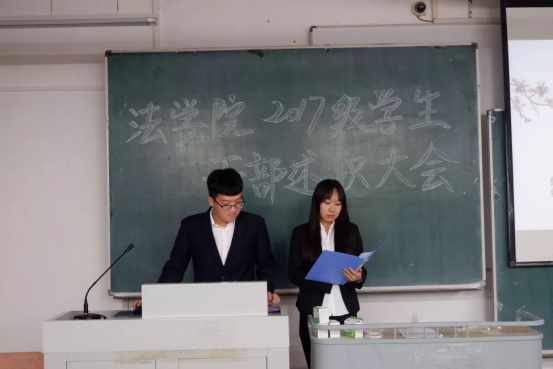 在本次述职大会中,述职同学依抽签顺序依次进行述职演讲,从日常管理、学风建设、寝室卫生等方面向大家介绍了过去一年所完成的工作、获得的经验、取得的成绩、遇到的困难以及未来展望。