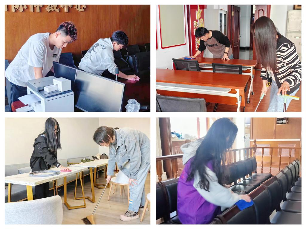 志愿者们分成两队分别来到学院办公区和模拟法庭进行志愿清扫活动。“把每一滴水都充分利用,让每一粒灰尘都无处遁形”成了大家此次清扫的行动指南。大家不怕脏、不怕累,不放过每一个死角,对负责区域进行了全面清理。从擦窗台到扫地板,再到擦地面,各项工作有序进行。志愿者们认真尽责,密切配合,用自己的实际行动践行为同学做实事的使命理念。在志愿者们的不懈努力下,办公区和模拟法庭变得干净美观、整齐有序,为校园卫生贡献自己的一份青春力量。