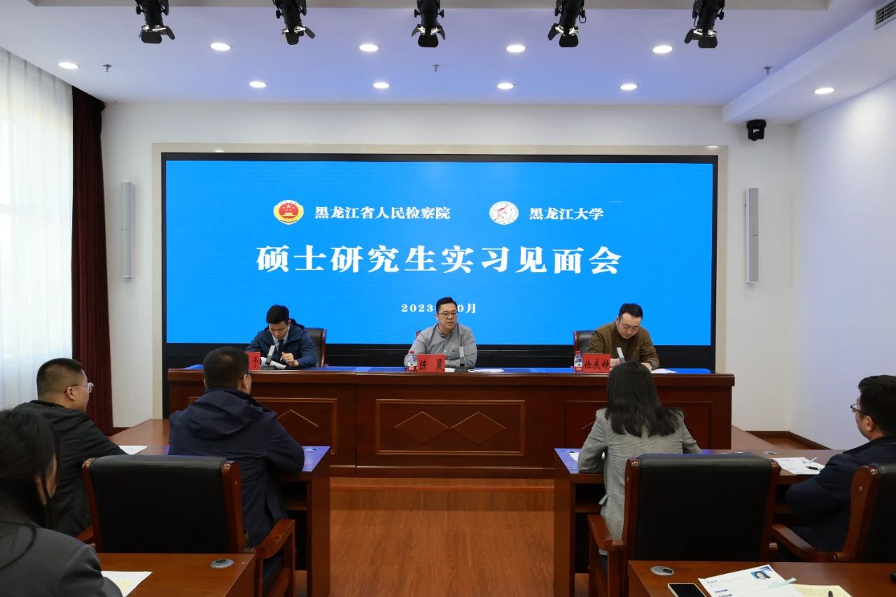 本次会议是继2021年我校与黑龙江省人民检察院签订检校合作共建协议以来,在假期接收实习生的基础上,首次启动在校学习期间研究生实习活动。实习为期三个月,在此期间,实习研究生将全面接触检察机关的“四大检察”“十大业务”,检察机关将从检察实务角度为实习生搭建理论对接实践平台。各实习部室也将同实习生围绕社会热点问题、法学前沿理论开展有针对性的调查研究,共同形成高质量的调研报告,更好实现优势互补、资源共享、互惠双赢,共同为龙江检察工作现代化作出有益的探索和贡献。