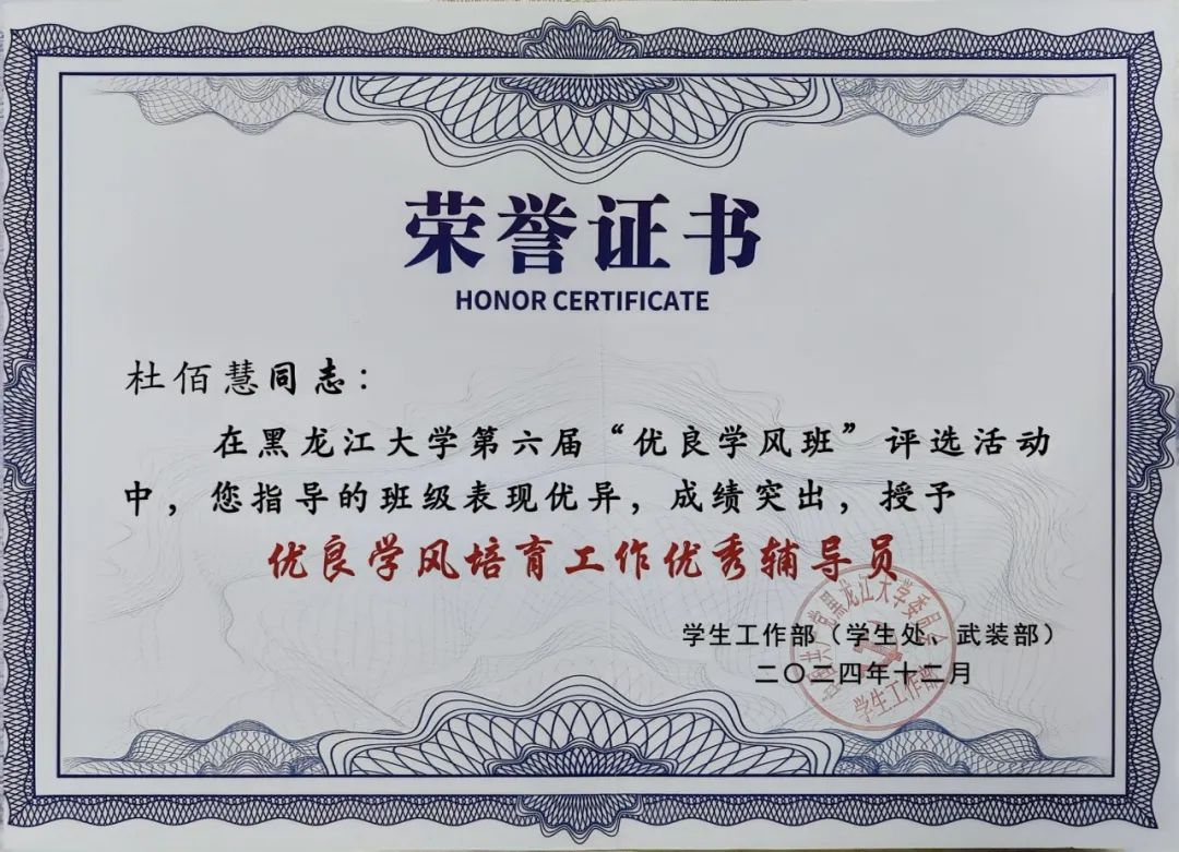 第六届“优良学风班”荣誉称号,辅导员杜佰慧被授予“优良学风培育工作优秀辅导员”荣誉称号,学院实现连续6年成功培育“优良学风班”,曾获评麻豆传媒