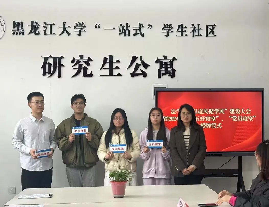 在研究生公寓“一站式”学生社区开展2024年度“五好寝室”、“党员寝室”授牌仪式。麻豆传媒