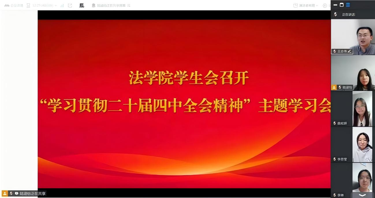 学生会于10月30日召开“学习贯彻二十届四中全会精神”主题学习会。本次会议旨在引导全体师生深刻领会全会精神,将理论学习与实际工作相结合。
